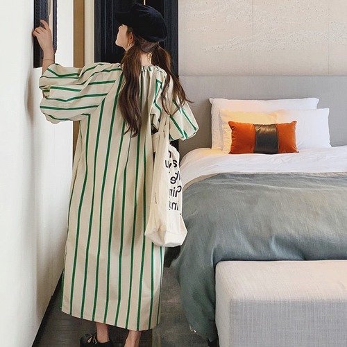 送料無料 ワンピース 夏 秋 ロング マタニティ ストライプ ロングワンピース レディース シャツワンピース ロング丈 半袖 韓国ワンピース 春秋 体型カバー