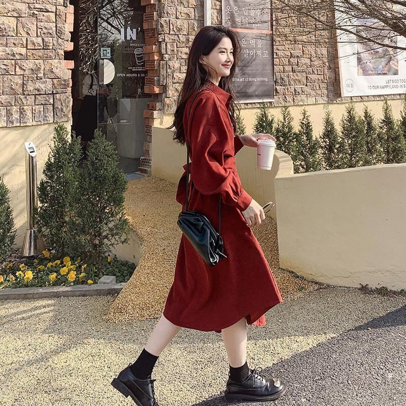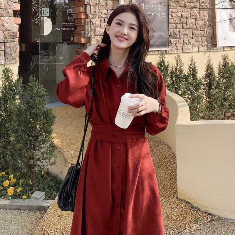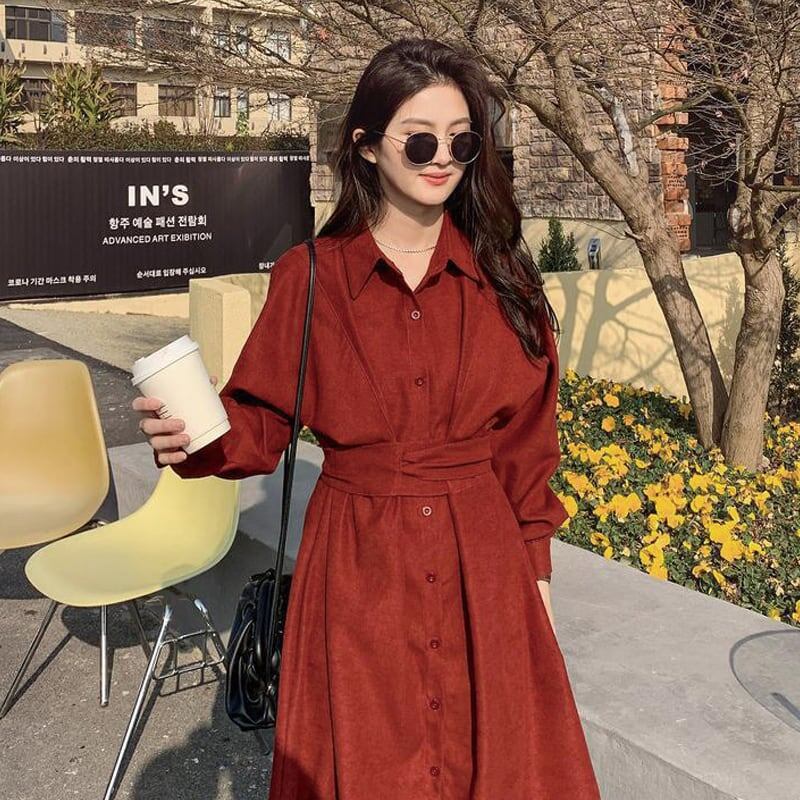 送料無料 ワンピース 春 秋 冬 ロング マタニティ 無地 ロングワンピース レディース シャツワンピース ロング丈 長袖 韓国ワンピース リボン Aラインワン