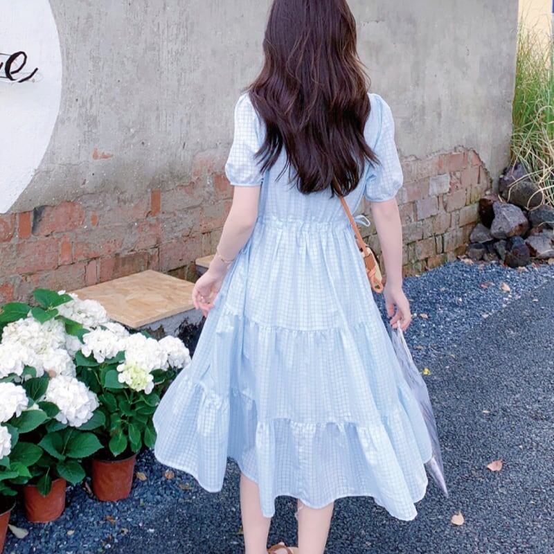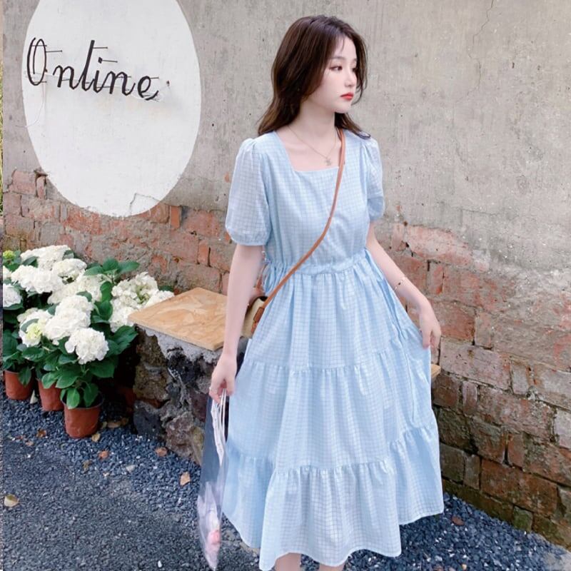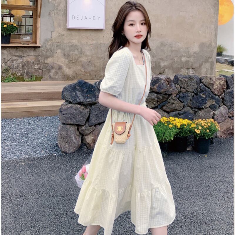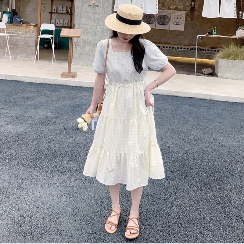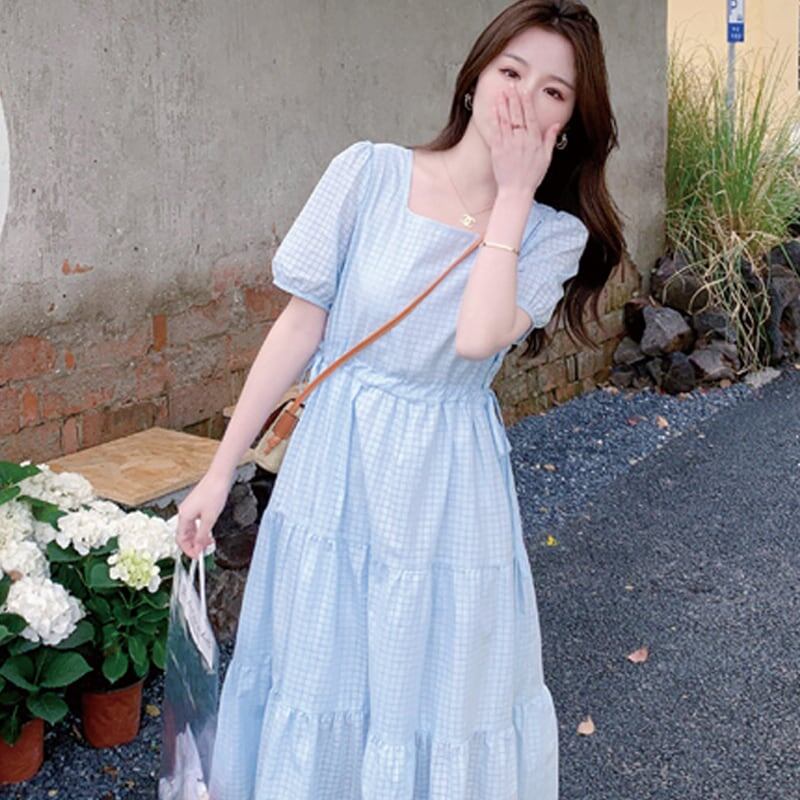 送料無料 春新作 ワンピース 春 夏 ロング マタニティ チェック柄 ロングワンピース 大きいサイズ レディース ロング丈 韓国ワンピース 半袖 春秋 キャンデ