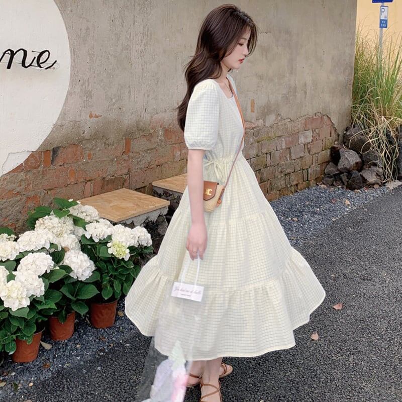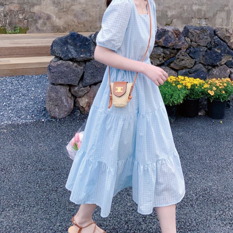 春夏の装いにぴったりのチェック柄ロングワンピース!