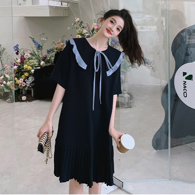 送料無料 春新作 ワンピース 春 夏 ロング マタニティ チェック柄 ロングワンピース 大きいサイズ レディース ロング丈 韓国ワンピース 半袖 春秋 ネイビー