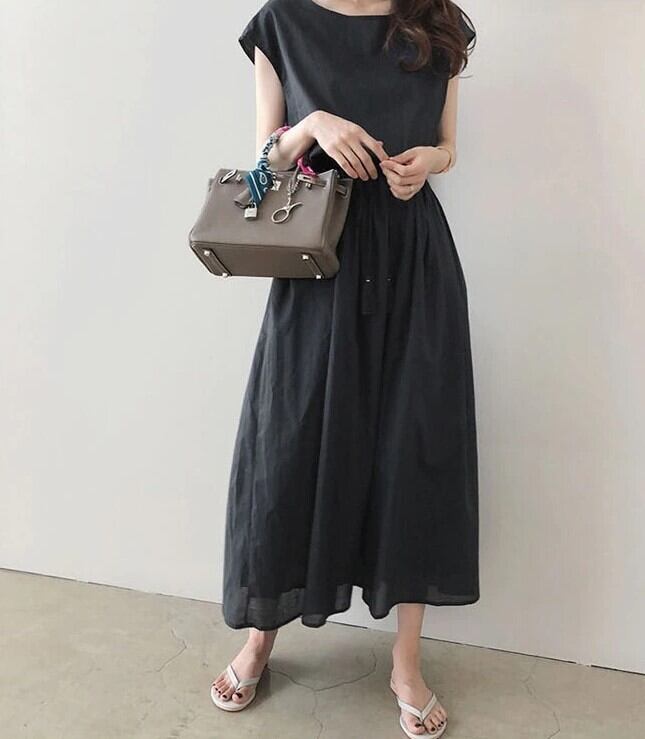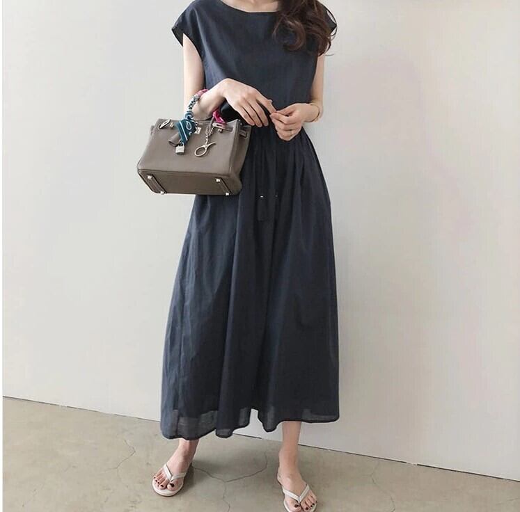 送料無料 春新作 ワンピース 春 夏 ロング マタニティ 無地 ロングワンピース 大きいサイズ レディース ロング丈 フレンチスリーブ 韓国ワンピース 半袖 リ