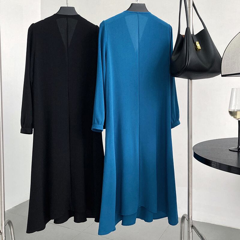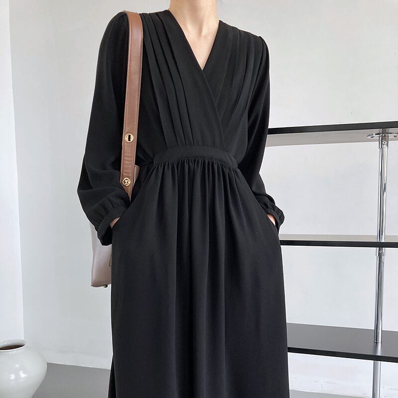 送料無料 春新作 ワンピース 春 夏 ロング マタニティ 無地 ロングワンピース ロング丈 長袖ワンピ 韓国ワンピース 春秋 ブラック ブルー シンプル エレガ