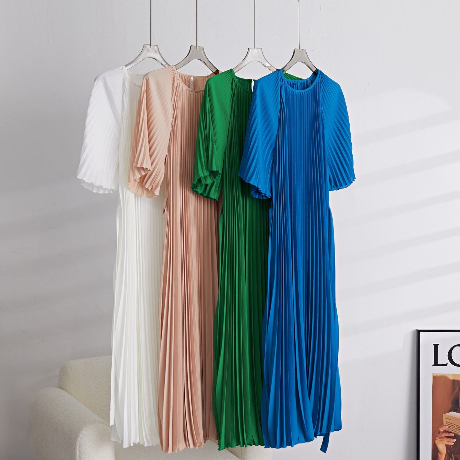 送料無料 春新作 ワンピース 春 夏 ロング マタニティ 無地 ロングワンピース レディース ロング丈 半袖 韓国ワンピース ドレス 春秋 プリーツデザイン ブ
