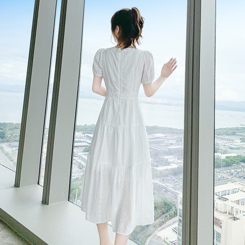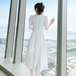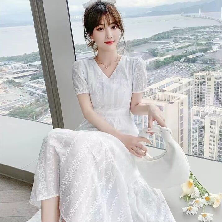送料無料 パフスリーブ レースワンピース 春新作 ワンピース 花柄 花柄ワンピースVネック 春 夏 ロング ロングワンピース レディース シャツワンピース ロン