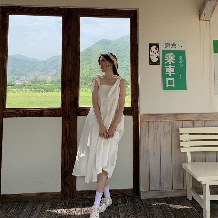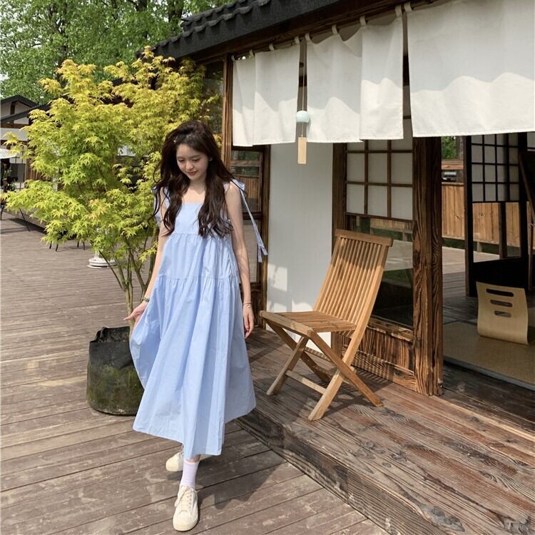 送料無料 ティアードワンピース 春新作 肩リボンワンピース 春 夏 ロング ロングワンピース キャミワンピース レディース シャツワンピース ロング丈 韓国ワン