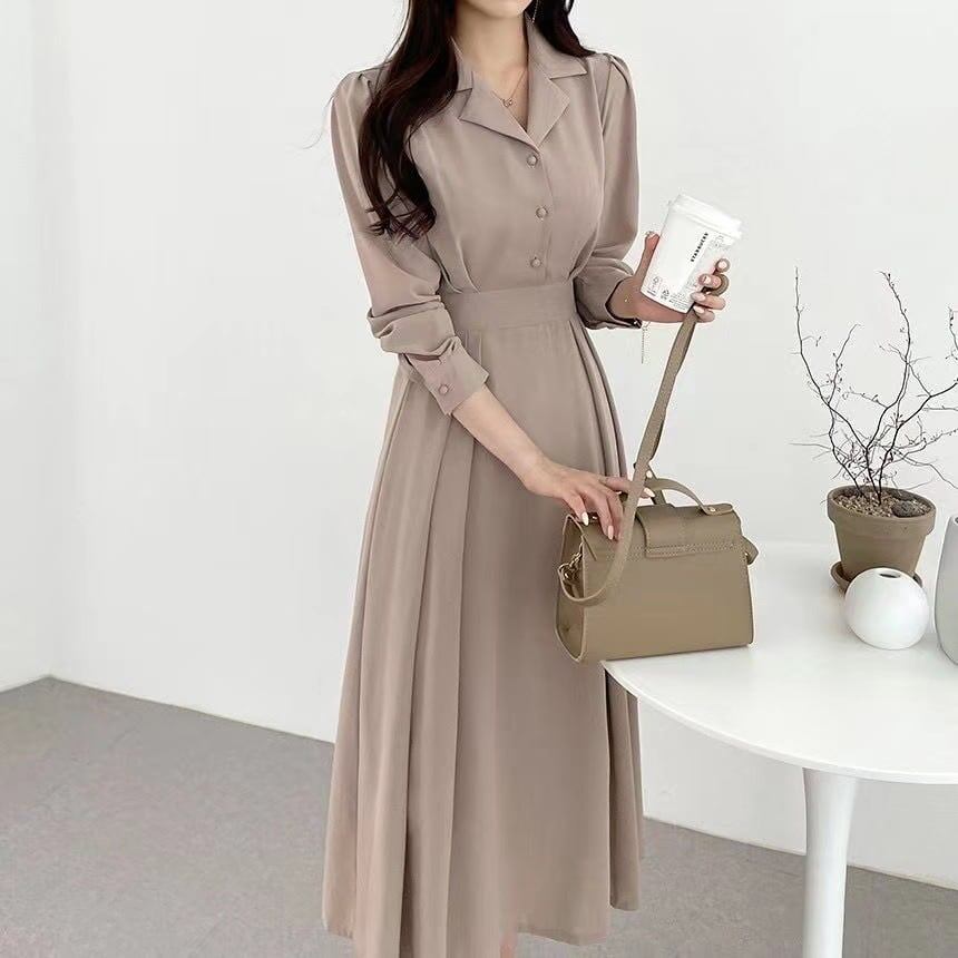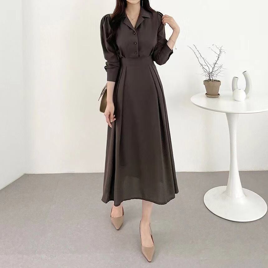 送料無料 シャツワンピース 春新作 ワンピース 春 夏 ロング ロングワンピース レディース シャツワンピース ハイウエスト マキシ丈 長袖 韓国ワンピース 黒