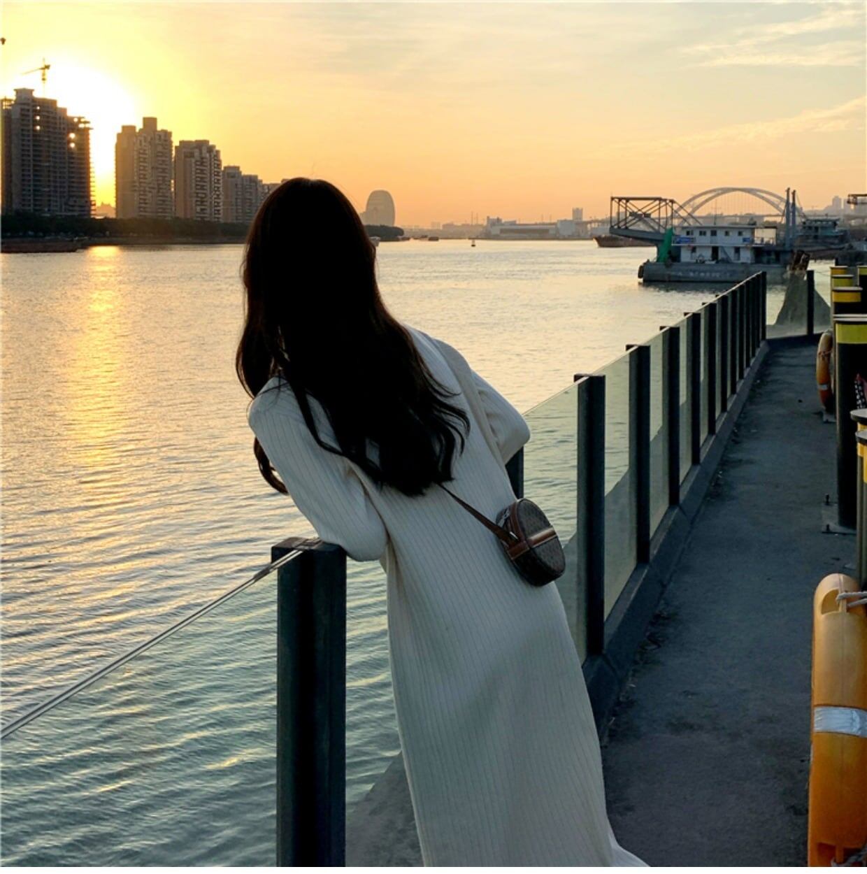 送料無料 ワンピース 春 夏 ロングワンピース レディース ロング丈 長袖 ニットワンピース 韓国ワンピース ドレス 春秋