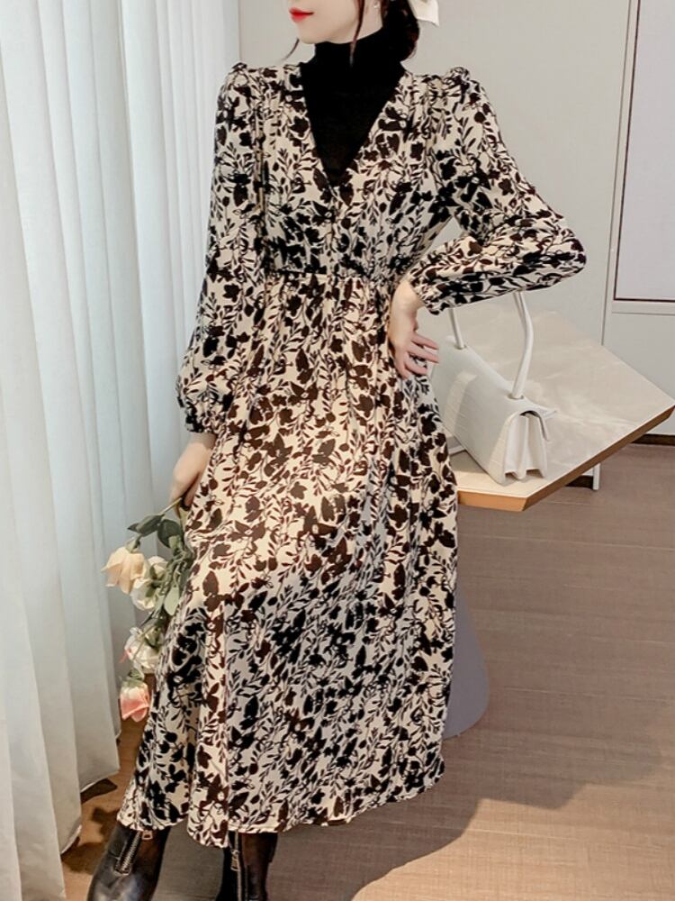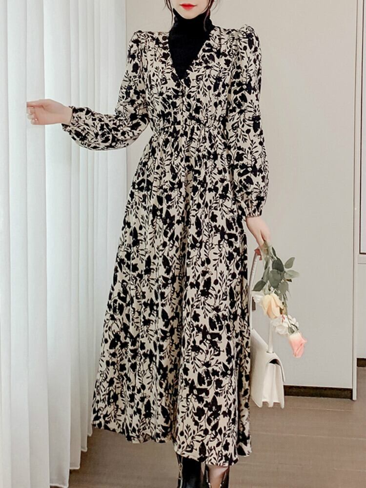 送料無料 ワンピース 春 夏 ロング ロングワンピース 花柄 レディース ロング丈 長袖 韓国ワンピース ドレス 春秋
