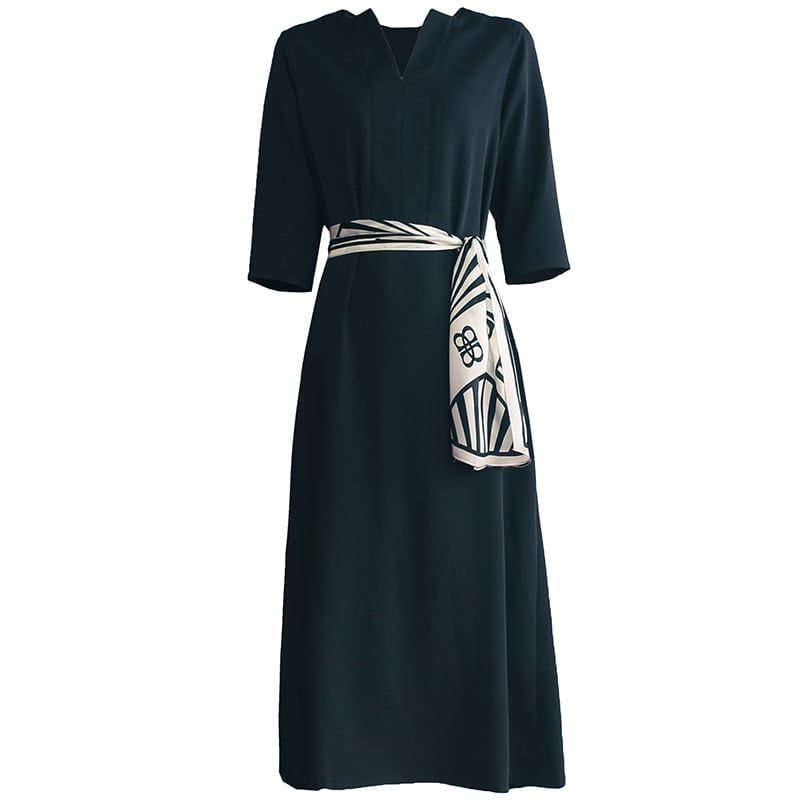送料無料 ワンピース 春 ワンピース 夏 ワンピース ミディ丈 ワンピース ワントーン 無地 スカーフ付き ミディ丈 ワンピース レディース ロング ロング丈