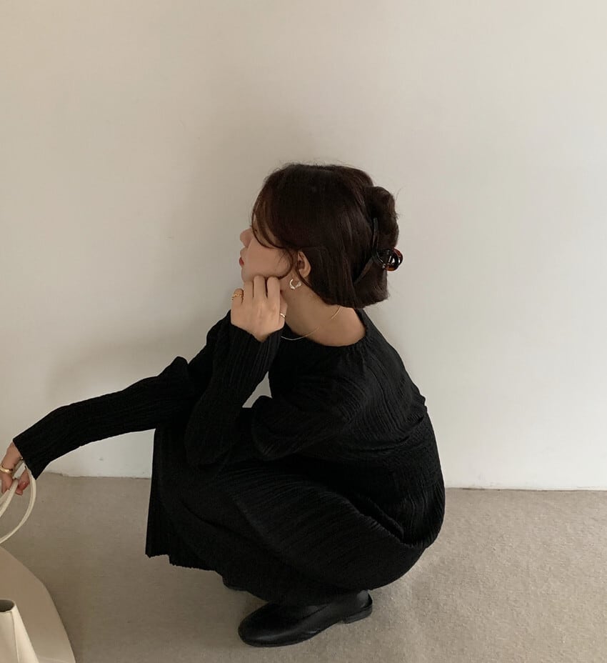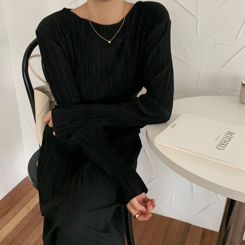 フェミニンさを引き立てるロング丈ニットワンピース。