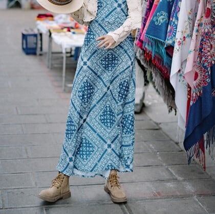 流れるようなロング丈で、優雅さとカジュアルさを両立。