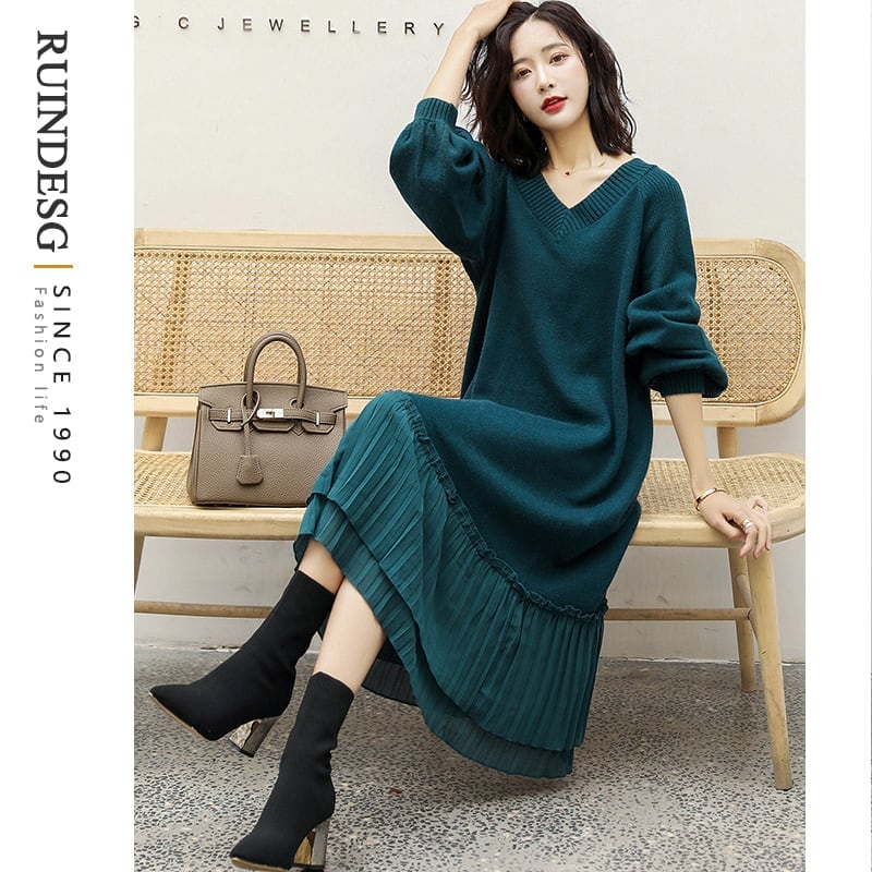 送料無料 秋新作 ワンピース 秋 ワンピース 冬 ワンピース ロング ワンピース ロング ワンピース レディース ロング丈 長袖 ニット ワンピース 韓国 ワン 2