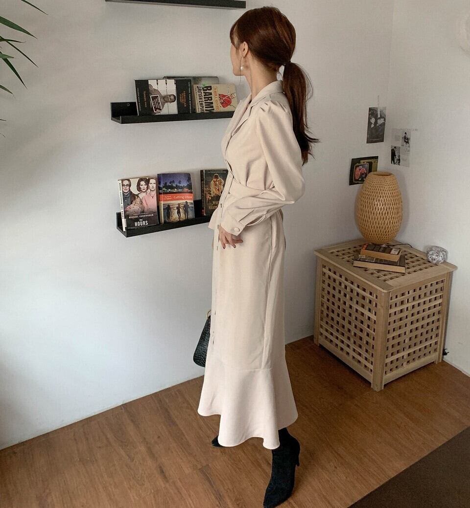 ウエストマークが美しいシルエットを演出し、女性らしさを引き立てます。