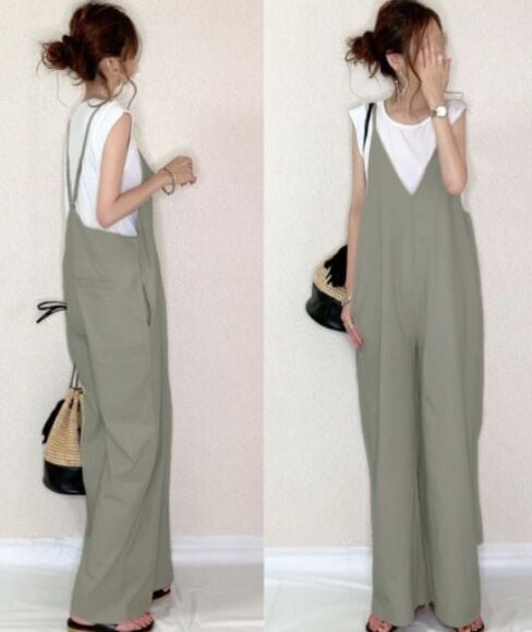 送料無料 春新作 オールインワン ロンパース レディース オールインワンサロペット レディースオールインワン ワイドパンツ 春 夏 秋 ブラック 20代 30代