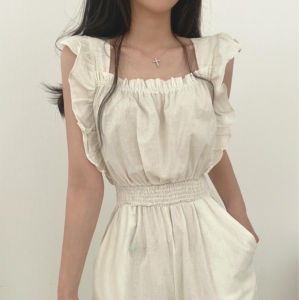 送料無料 春新作 オールインワン サロペット ロンパース レディース オールインワンサロペット レディースオールインワン ノースリーブ ハイウェスト ワイドパン 2