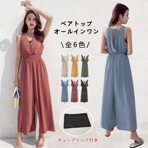 送料無料 春新作 オールインワン サロペット ロンパース レディース オールインワン サロペット ワイドパンツ 春 夏 秋 20代 30代 40代 シンプル 大