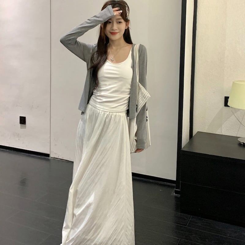 送料無料 春新作 セットアップ レディース 上下レディースセットアップ 春 夏 秋 セットアップ カーディガン タンクトップ スカート ホワイト グレー 20代