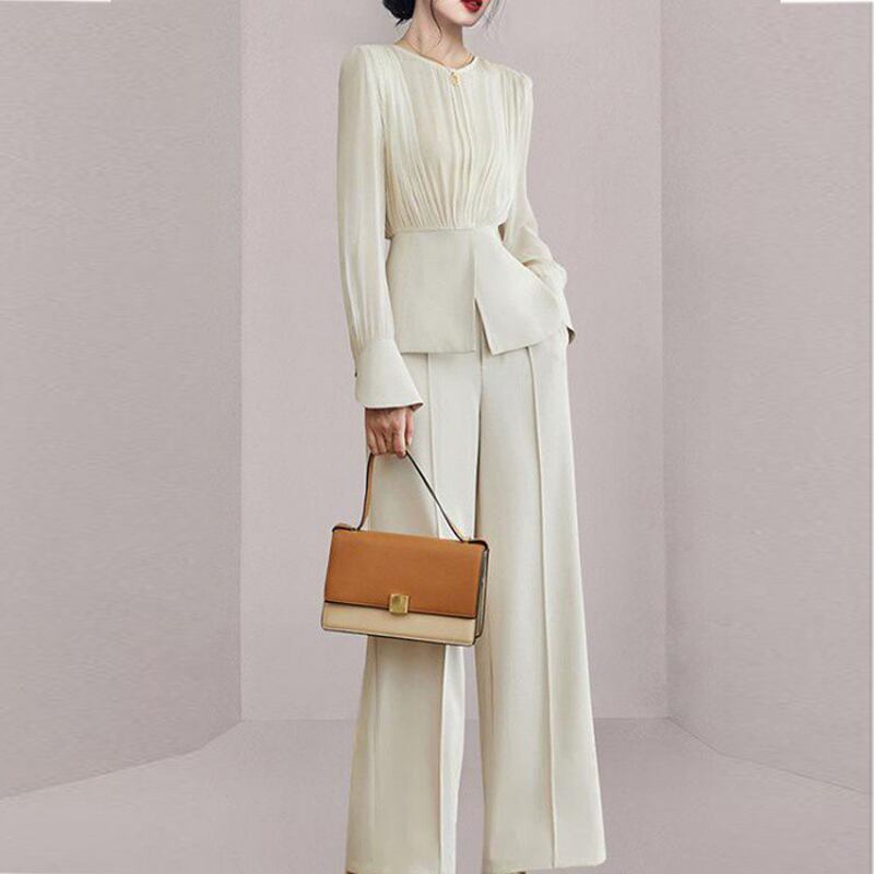 洗練されたスタイルが光る、エレガントなパンツドレス。
