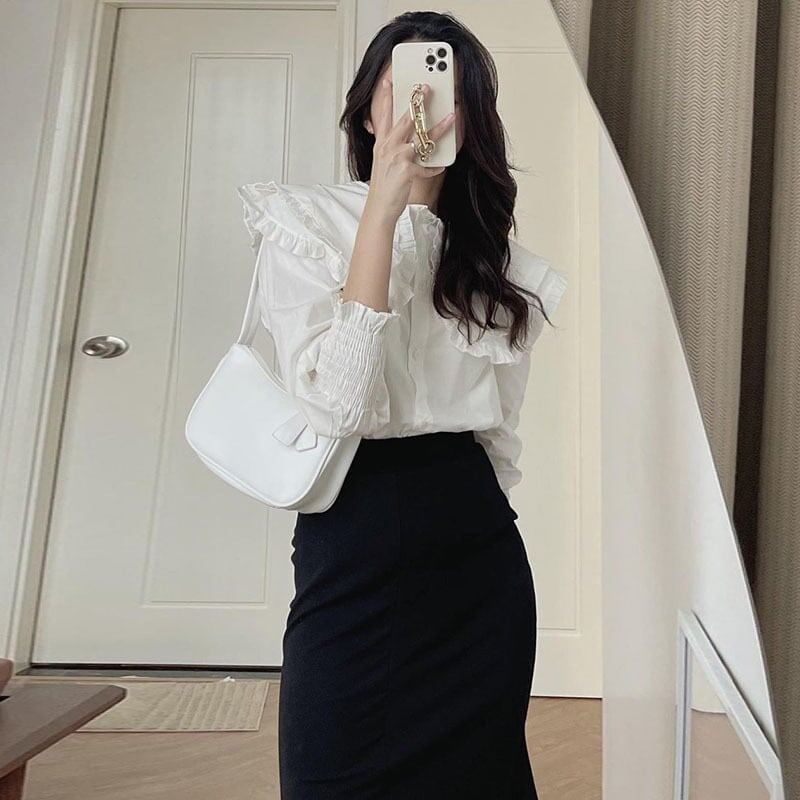 送料無料 セットアップ ブラウス 大きな襟 マーメイドスカート レディース 上下レディースセットアップ 春 夏 秋 セットアップ スーツ セットアップnew セ