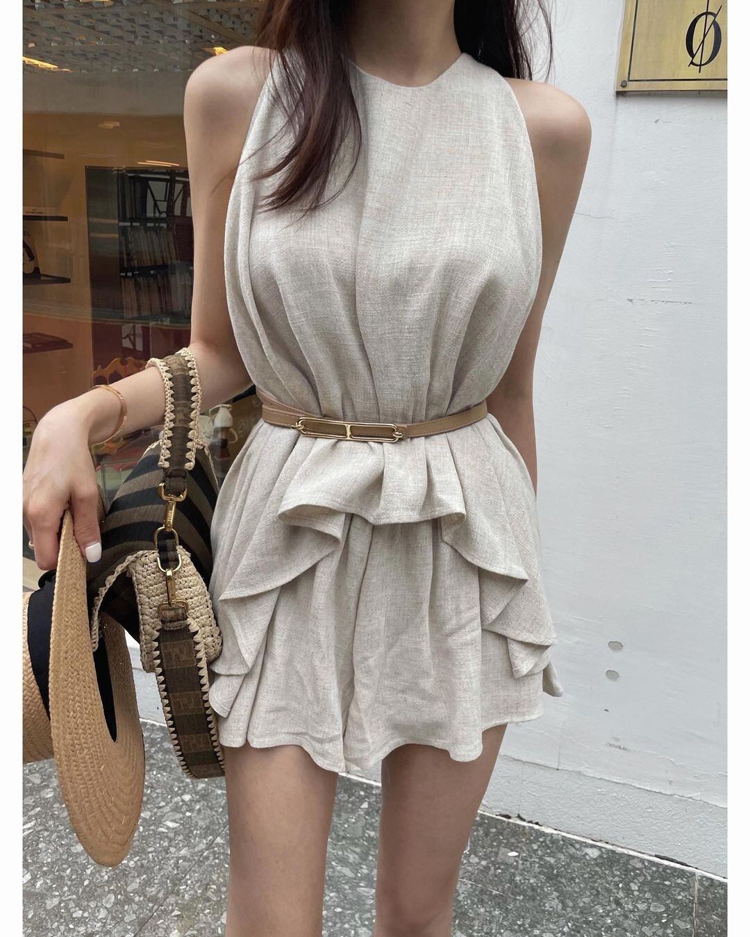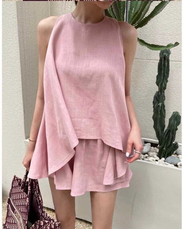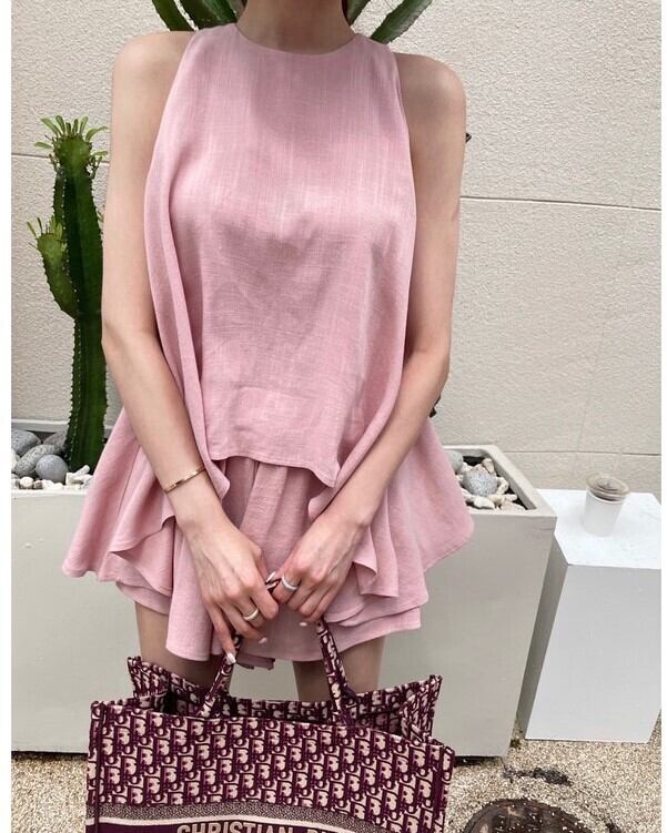 揺れるシルエットが華やかさを演出し、リゾート気分を盛り上げる。