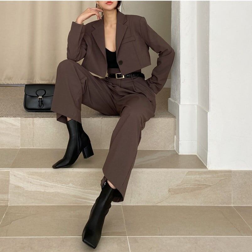 送料無料 セットアップ 2点セット クロップド ジャケット パンツ スラックス ハイウエストパンツ レディース 上下レディースセットアップ 春 夏 秋 セットア