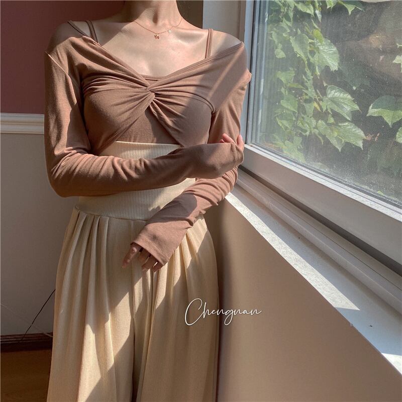 送料無料 カットソー レディース カットソー セットアップ カーディガン 長袖 レディース カットソー レディース ロング丈 カットソー オフショルダー 韓国フ