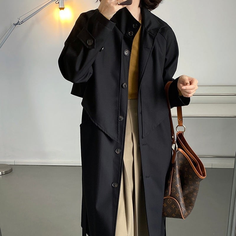 春の訪れを感じる、洗練されたロングトレンチコート。