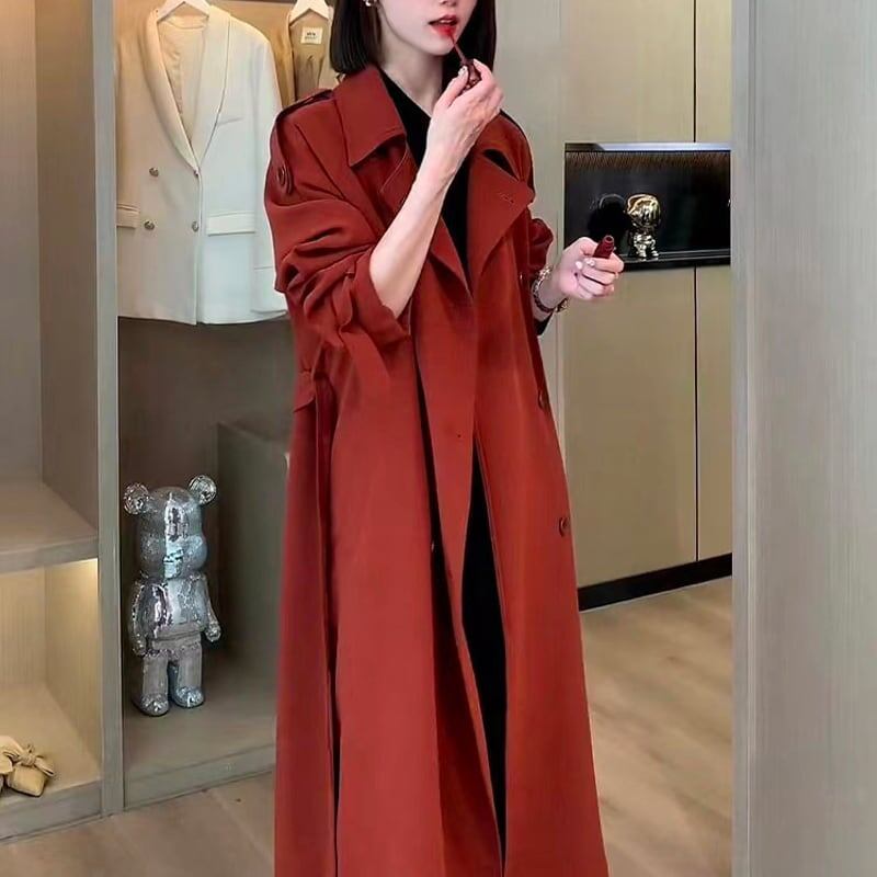 送料無料 トレンチコート レディーストレンチコートロング ロングトレンチコート レディース ロング丈 スプリングコート 春 秋 冬 春秋 コート レッド シンプ