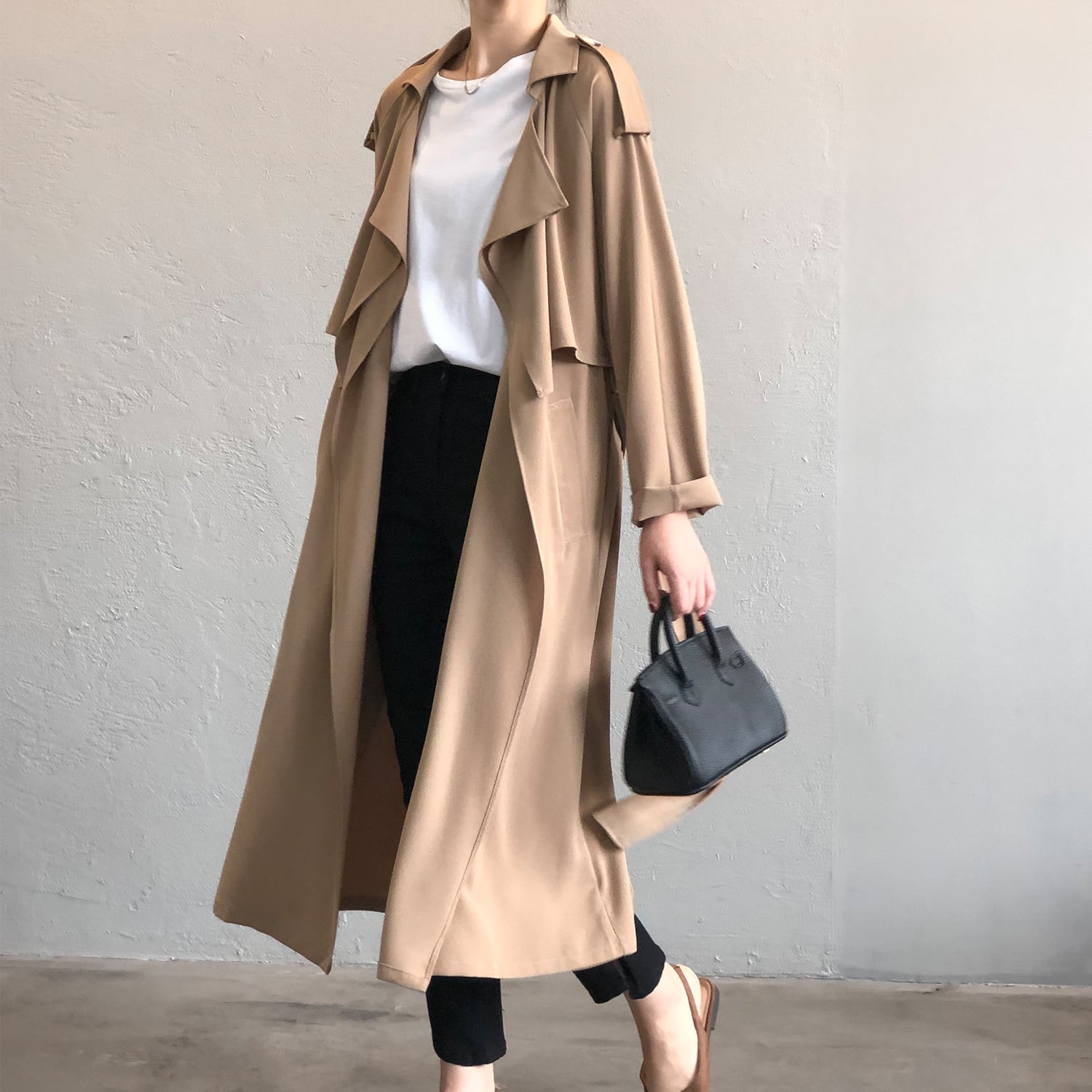 春秋のコーデを華やかに演出するトレンチコート。