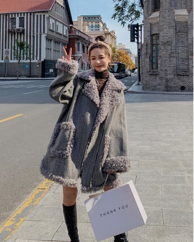 送料無料 アウター ファーコート レディース ファー付きコート レディース 韓国 ファーコート レディース アウター 秋 冬 カジュアル 厚手 ヘリンボーン ミ
