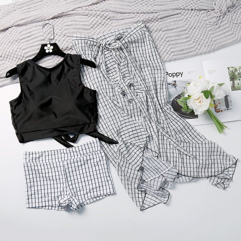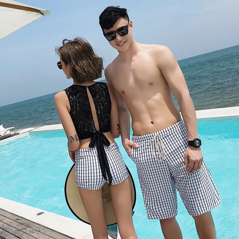 送料無料 [男女セットで購入も可能] 水着 ビキニ 水着ビキニ 3点セット 韓国 水着 スカート付き マイクロビキニ ブラック レース 20代 30代 無地 リ