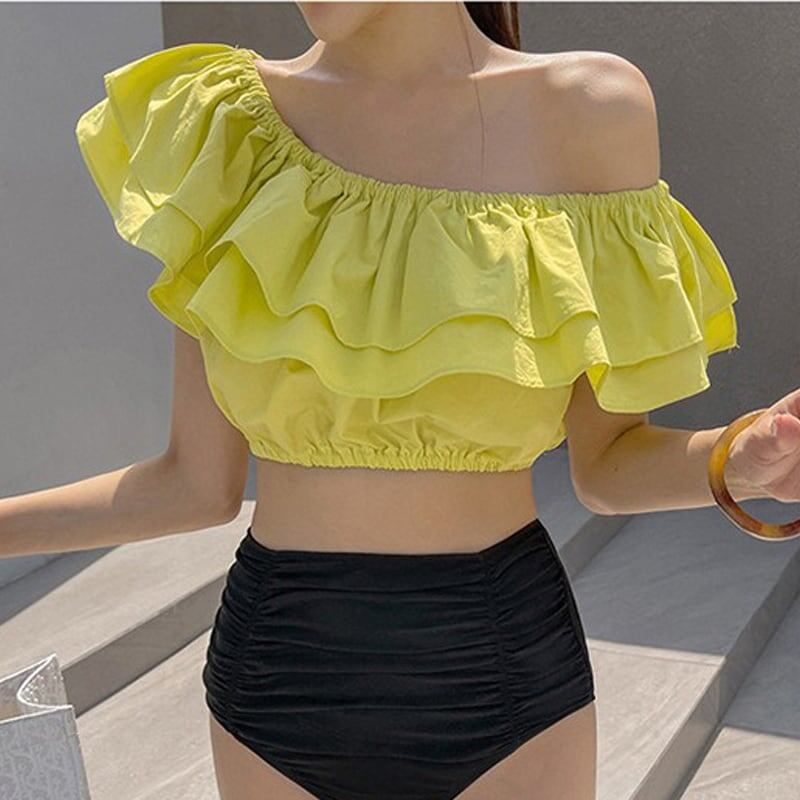 華やかなイエローフリルが魅力のワンショルダービキニ!