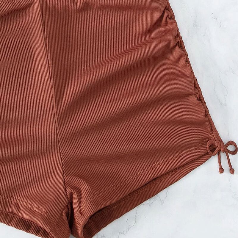 魅力的なブラウンビキニで今季のリゾートスタイルを完成!