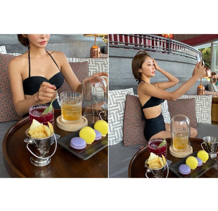 ホワイトとブラックのスタイルで、ビーチでもプールでも主役に!