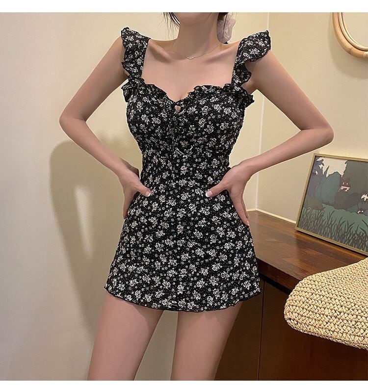 送料無料 ワンピース 水着 韓国水着 体型カバー水着 ワンピース40代 体型カバー オールインワン レディース ワンピース ぽっちゃり 20代 30代 花柄 ブ