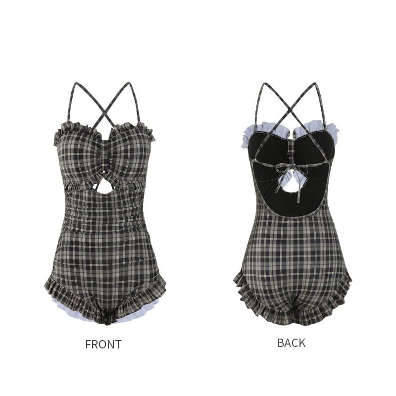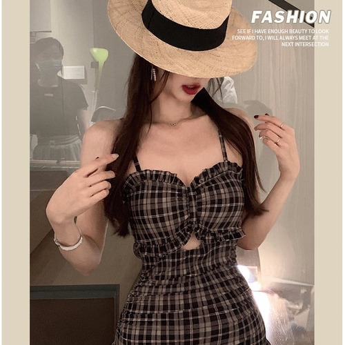 フリルデザインが女性らしさを引き立て、ビーチでもプールでも映える一着。