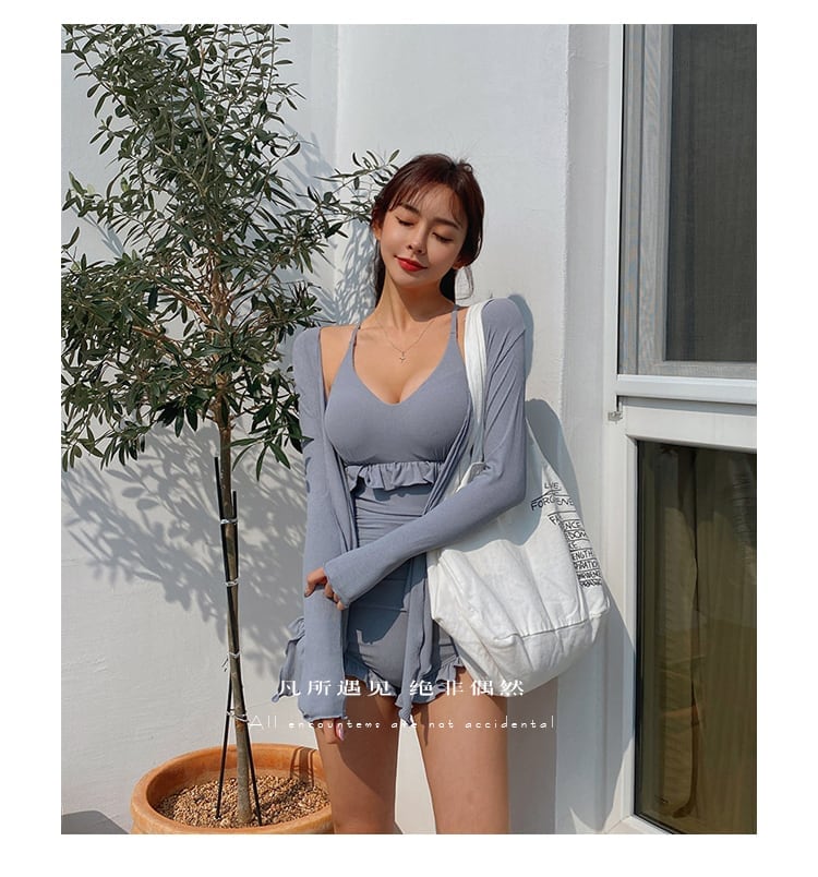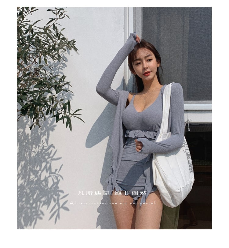 送料無料 ワンピース 水着 韓国 水着 体型カバー ワントーン ブラウス付き 水着 ワンピース 40代 水着 ワンピース 体型カバー オールインワン 水着 体型