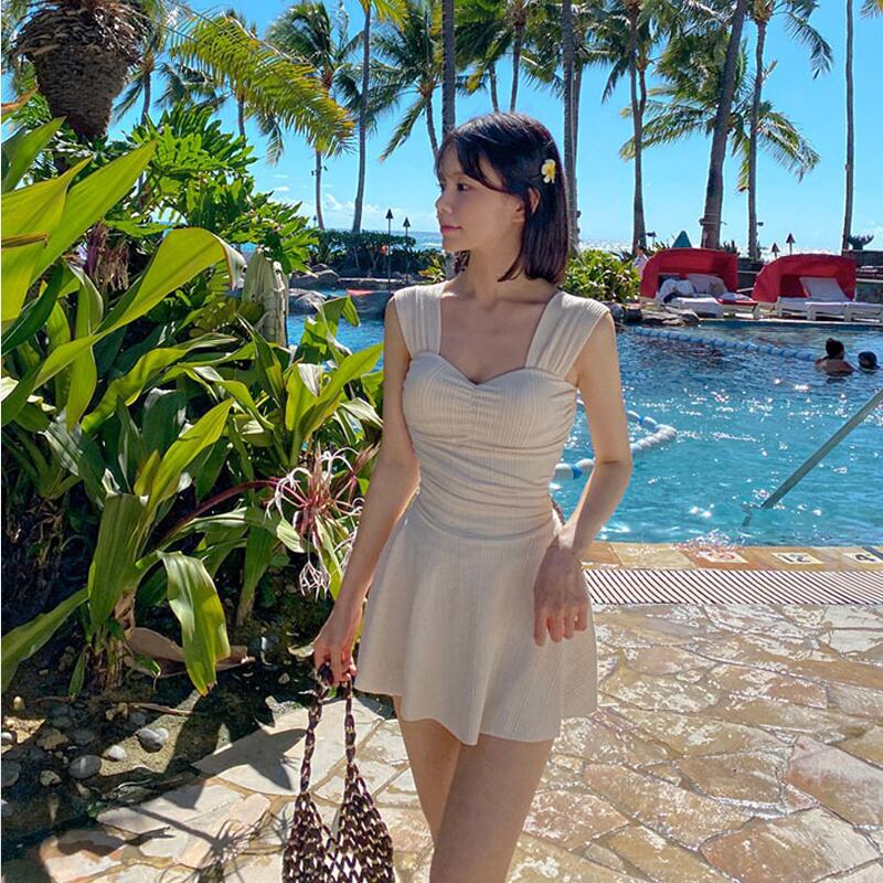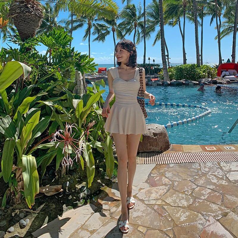 送料無料 ワンピース 水着 韓国水着 体型カバー水着 ワンピース 40代 30代 20代 体型カバー オールインワン ぽっちゃり 無地 フリル ママさん 上品デ