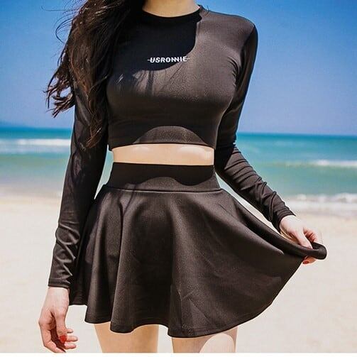 送料無料 韓国 水着 タンキニ 長袖 ラッシュガード 体型カバー 水着 タンキニ 2点セット 40代 水着 レディース 体型カバー 2点セット ママ タンキニ 1