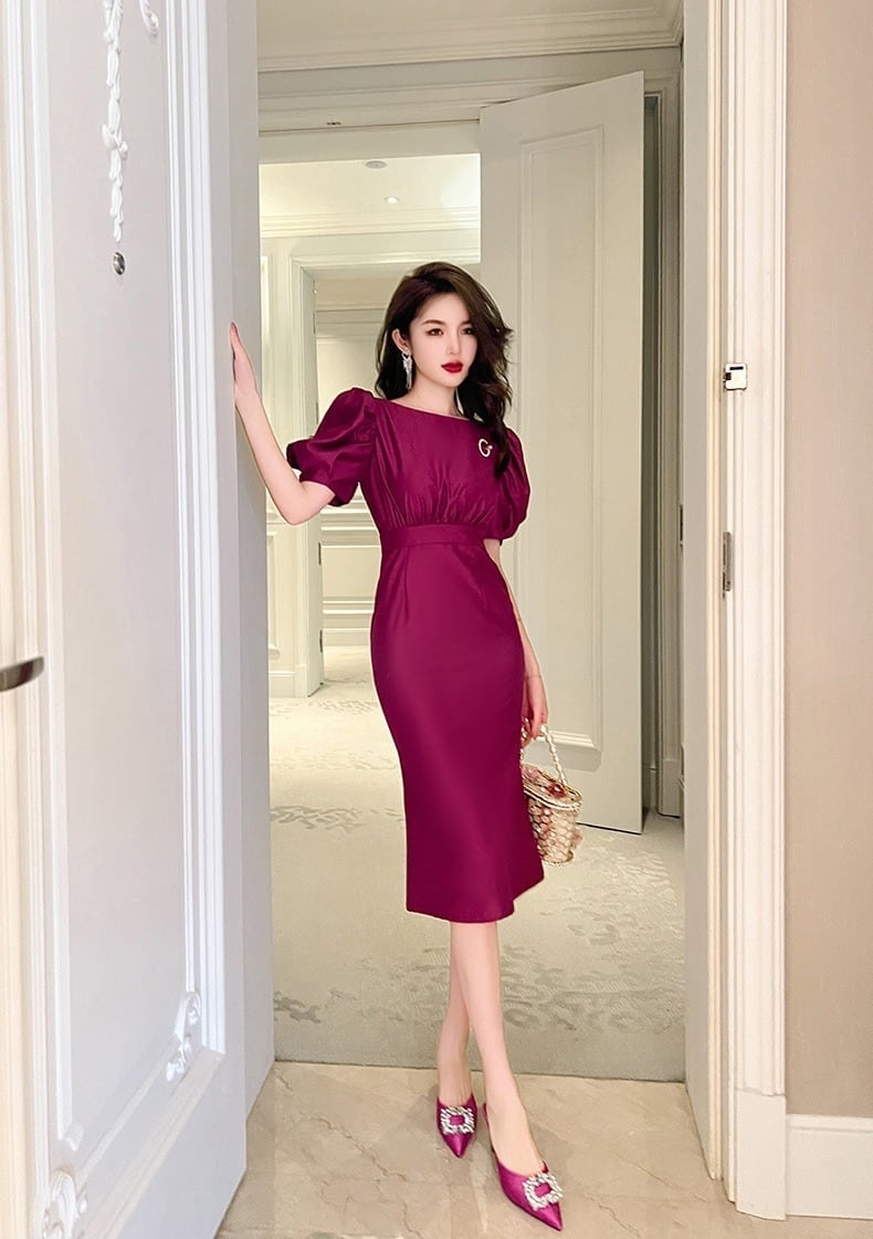 送料無料 パーティードレス 結婚式 お呼ばれドレス 結婚式のお呼ばれ 20代 30代 40代 フォーマルドレス 半袖 結婚式 ワンピース パープルレッド パーテ