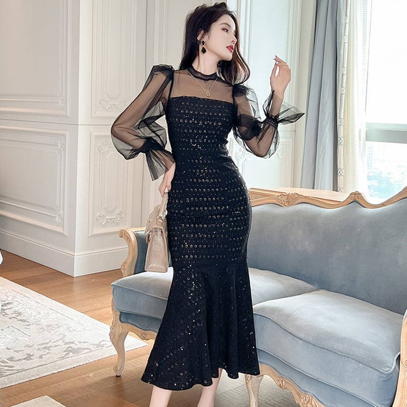 送料無料 パーティードレス 結婚式 お呼ばれドレス 結婚式のお呼ばれ 20代 30代 40代 フォーマルドレス 袖あり 結婚式 ワンピース 膝下丈 ミモレ丈 二 2