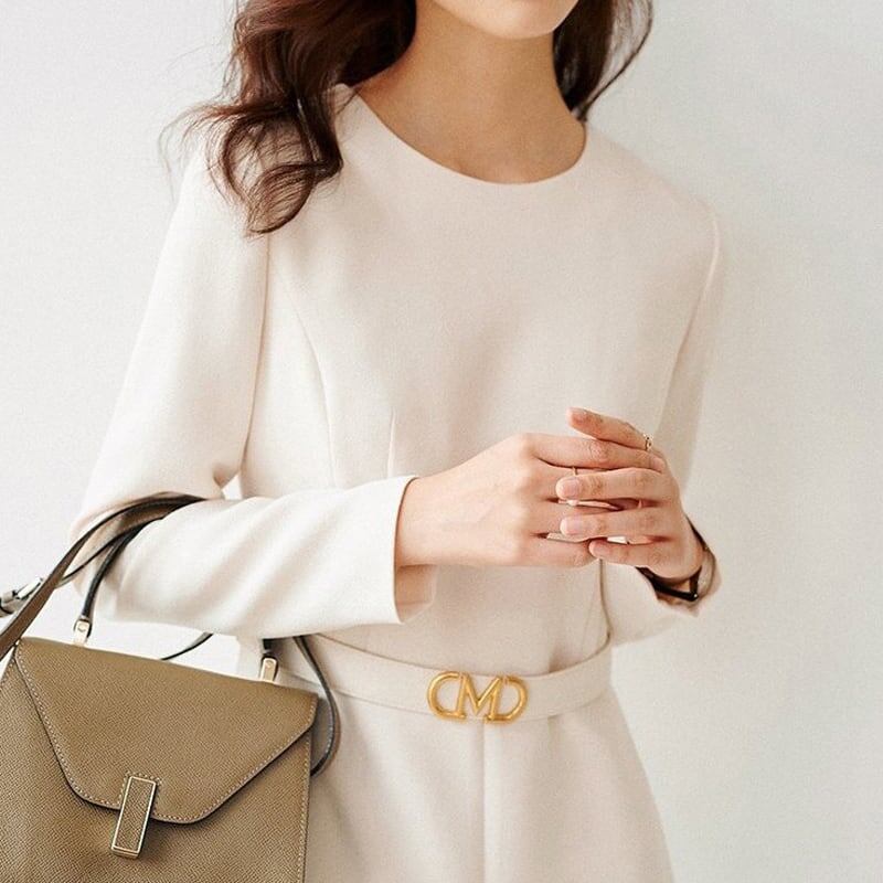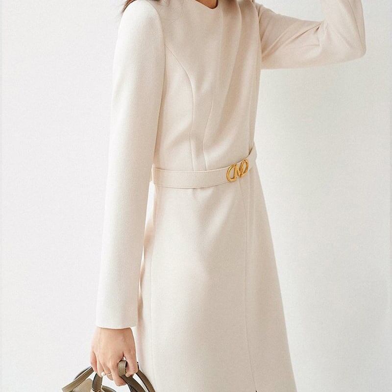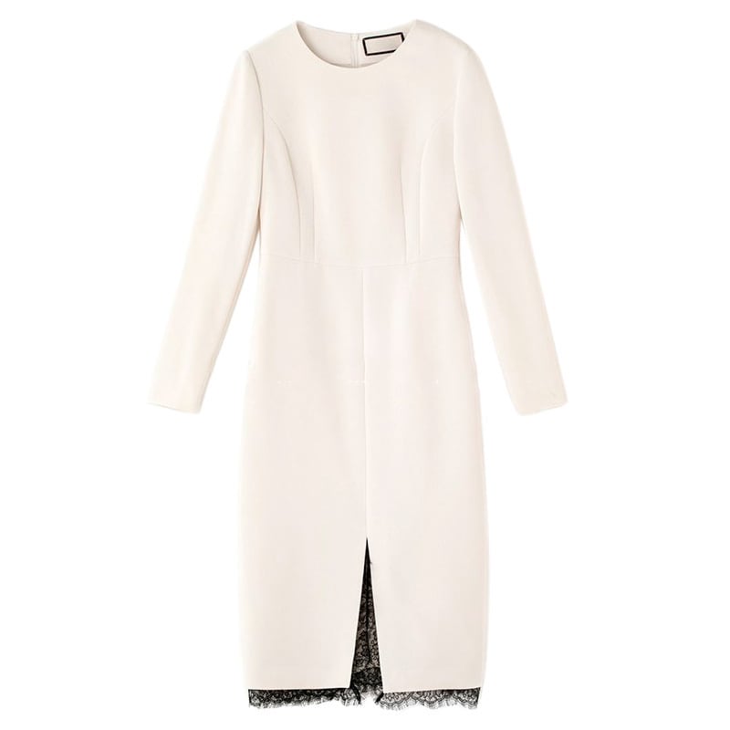 エレガンスと気品を纏う、袖ありホワイトドレス。