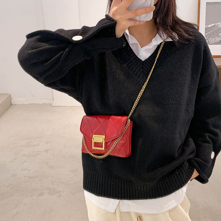 ゴールドチェーンを使いリッチな雰囲気をプラスしているショルダーバッグです。