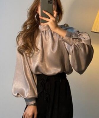 【送料無料】バルーン袖トップス トップス 袖あり 長袖 l ハイネック 大人可愛い きれいめ シンプル 大人 おしゃれ かっこいい 無地 春 秋 10代 20代 30代 40代 50代 レディース OL 通勤 デート お出かけ 女子会 休日 フリーサイズ 白 黒 茶色