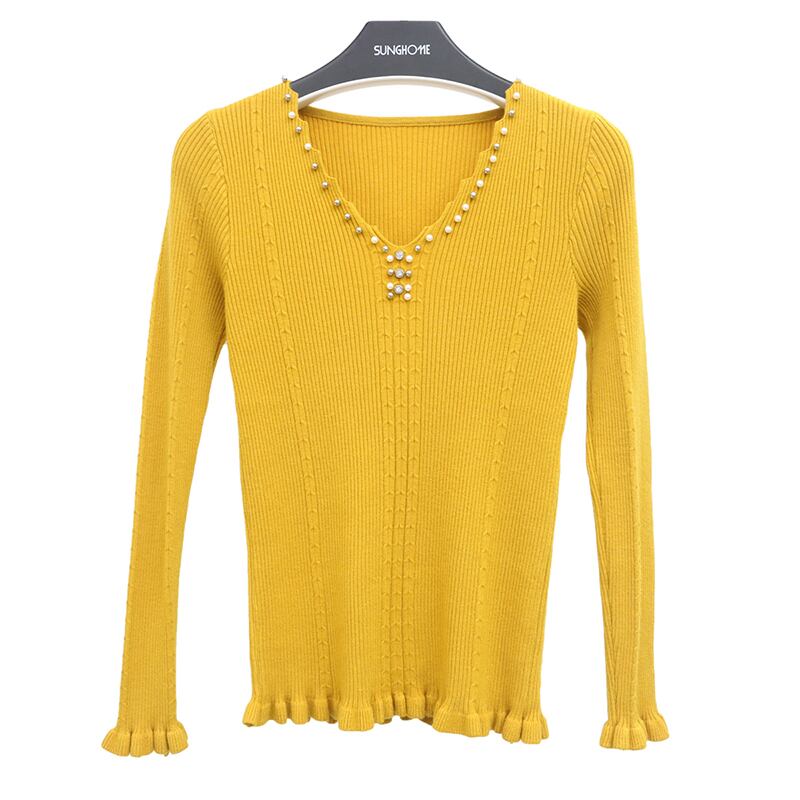 【送料無料】ビジューニット トップス セーター 袖あり l Vネック リブニット かわいい 大人可愛い きれいめ シンプル カジュアル 大人 上品 おしゃれ お洒落 大人女子 こなれ感 ラブリー キュート ガーリー エレガント 主役級 存在感 無地 春 秋 10代 20代 30代 レディース 学生 通学 お出かけ 公園デビュー 着回し 普段使い 重ね着 韓国 韓国系 ゆったり ゆる 色展開 白 ホワイト 黒 ブラック 灰色 グレー 黄色 イエロー ワインレッド カラバリ