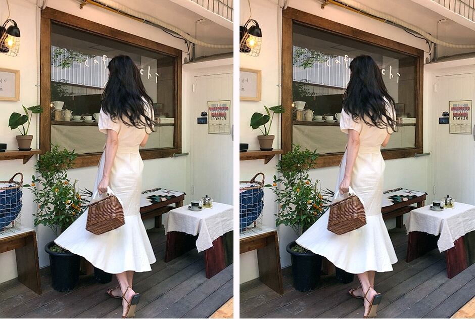 高めの位置でウエストマークできるリボンが、スタイルにメリハリをつけてくれます。