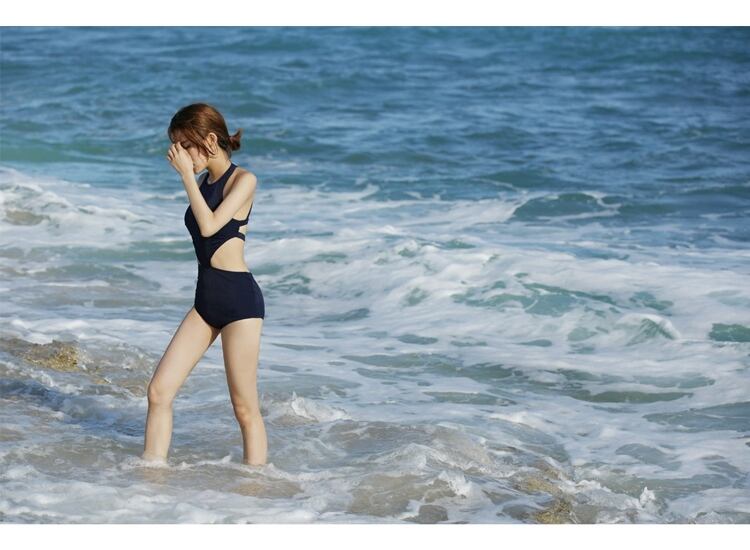 大胆なカットアウトデザインが魅力的なワンピースタイプの水着。