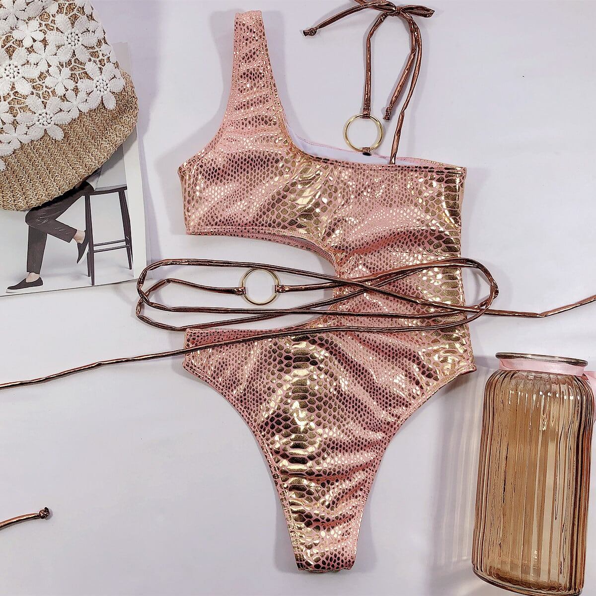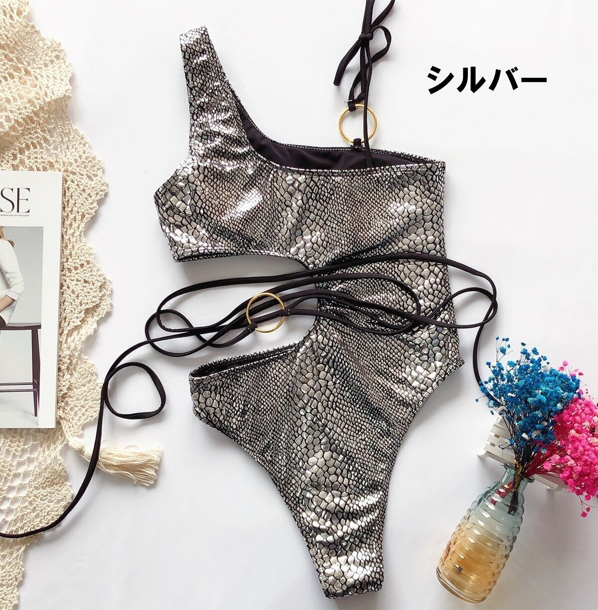 【送料無料】ワンピース 水着 モノキニ ハイレグ l アニマル ヘビ柄 メタリック 個性的 かっこいい 海外 水着 レディース ストラップ アシンメトリー カットアウト 金色 銀色 ゴールド シルバー ピンク S M L 蛇柄 スネーク 盛れる 谷間見せ 露出 海外 女性用 日焼け 海 海水浴 プール ナイトプール 海外 セレブ モデル ユニーク おしゃれ 旅行 リゾート 存在感 女っぽ 10代 20代 30代 大きいサイズ トレンド 細身 存在感 インスタ映え 美脚 スタイリッシュ