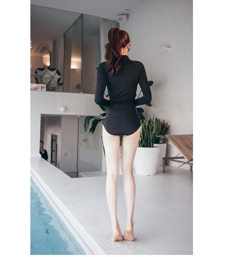 【送料無料】 ラッシュガード水着 水着 スイムウェア l ワンピース 体系カバー 二の腕カバー 長袖 胸元 谷間 谷間魅せ 盛れる 大人可愛い きれいめ セクシー sexy シンプル 大人っぽい 存在感 スタイリッシュ かっこいい 無地 10代 20代 30代 レディース 夏 海 ビーチ プール リゾート 体系カバー 二の腕カバー 美脚 脚長 着痩せ スタイルアップ サイズ S M L XL 黒 ブラ